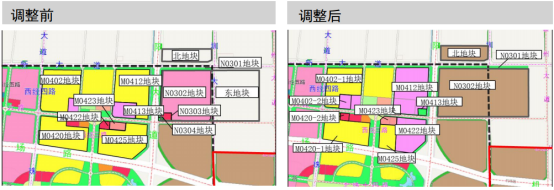 (二)將原N0302地塊(科研用地,37.74公頃,容積率≤2.0)、N0303地塊(零售商業(yè)用地,1.16公頃,容積率≤2.0)、N0304地塊(公園綠地,0.21公頃)均調(diào)整為二類工業(yè)用地,并與深圳大道東側(cè)部分地塊整合為新N0302地塊(二類工業(yè)用地,72.41公頃,容積率≥1.0)。