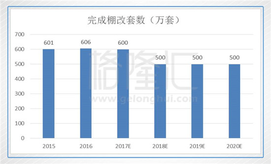 2015、2016年完成棚改的套數(shù)與計(jì)劃相近,預(yù)計(jì)今年棚改計(jì)劃量與去年 600 萬套持平,而未來三年全國計(jì)劃完成 1500萬套棚戶區(qū)改造,假設(shè)平均分布,較 2015-2017 年三年計(jì)劃呈現(xiàn)下降趨勢。