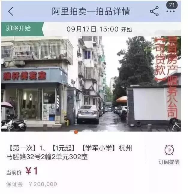 而阿里拍賣的房子,很多房源是法院的拍賣房。一般來說,起拍價雖是市場價的7-8折,但最后的成交價會根據(jù)熱度而定。競拍的價格存在高度不確定,有可能撿漏,也有可能拍出高價。不久之前,杭州一套學區(qū)房在阿里拍賣上,號稱1元起拍,可最終成交價是609萬。據(jù)了解,該區(qū)域80平方的房子,總價在480萬至640萬這個范圍,而這套被拍到609萬的老破舊的房子雖說是不虧的,但想通過撿漏撿個房子,真不是那么容易的。