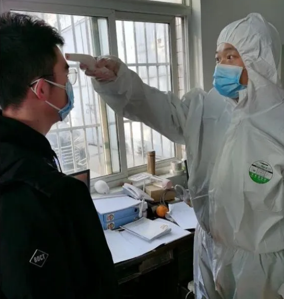 △王雪峰為戰(zhàn)友檢測(cè)體溫