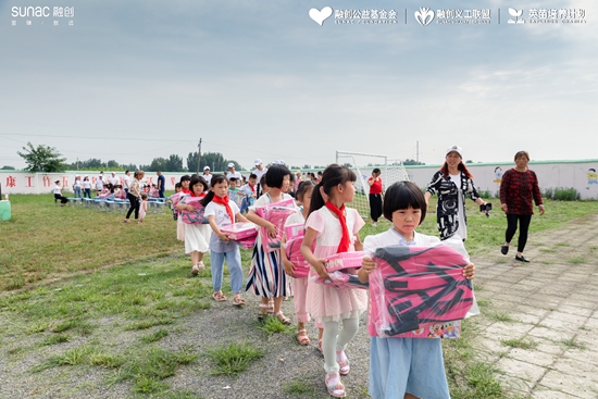 特“益”工種們?yōu)樾∮⒚鐜砹巳碌恼n桌椅和學(xué)習(xí)用品