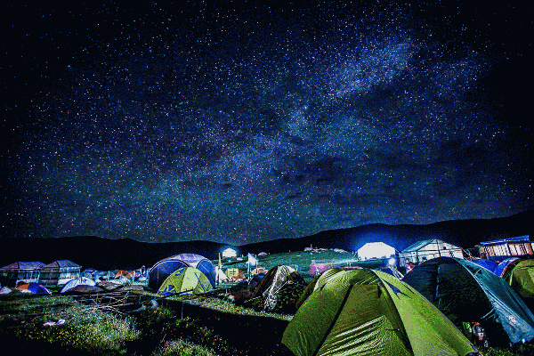 山風(fēng)輕拂、露天帳篷、浪漫星空