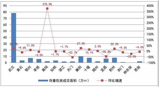 2019年4月,全省17個(gè)市州存量房成交面積155.55萬方,環(huán)比增長13.8%,存量房成交15976套,環(huán)比上漲14.95%。黃岡市4月份存量房成交量較3月份上漲四倍有余,去庫存速度加快。