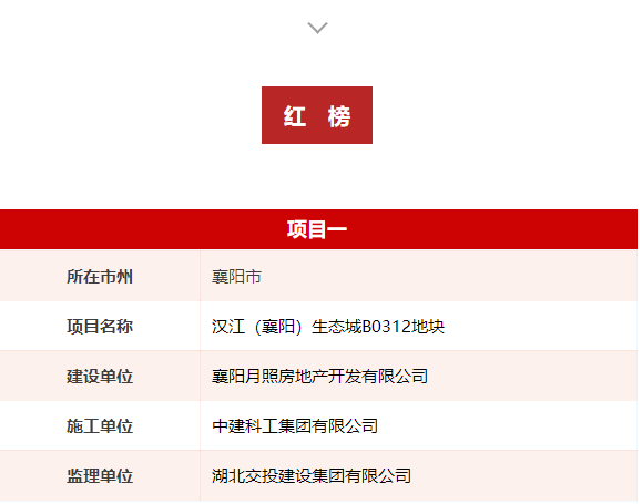 為壓實工程參建各方主體責任,規(guī)范建筑市場行為,提升工程質量安全和文明施工水平,鼓勵先進、鞭策后進,依據(jù)省住建廳《關于建立湖北省建設工程安全文明施工紅黑榜制度的通知》精神,結合省廳安全生產飛行檢查情況,截止目前湖北住建公布了兩批2023年湖北省建設工程安全文明施工紅榜項目,我市漢江(襄陽)生態(tài)城B0312地塊、襄陽市濱江商務帶F地塊兩個項目入選紅榜。