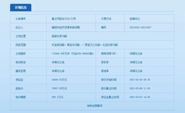 襄陽土拍市場掛拍的巨幅地塊成交,位于長投正榮府北側(cè),緊鄰楓葉國際學(xué)校,其總占地面積體約258畝。