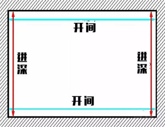 “開間”是指兩橫墻間的距離,可理解為住宅的寬度?!斑M(jìn)深”是指兩縱墻間的距離,可理解為住宅的長度。簡單判斷的方法為,房門進(jìn)入方向的距離為進(jìn)深,左右兩邊的距離為開間。