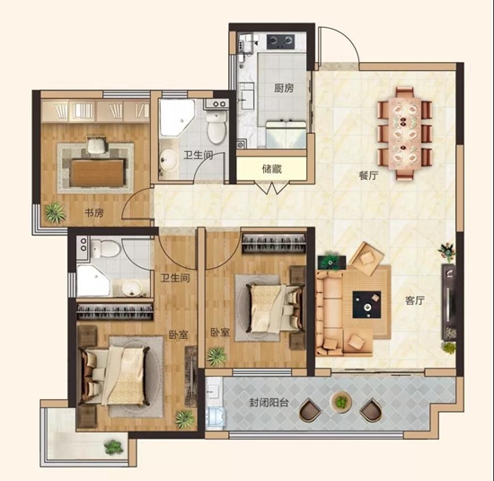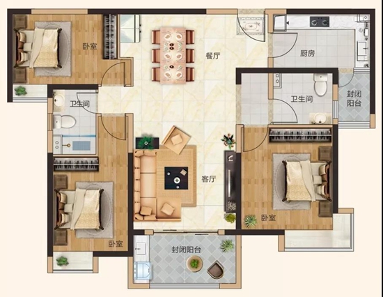 南北雙陽臺,客廳緊鄰超大景觀陽臺