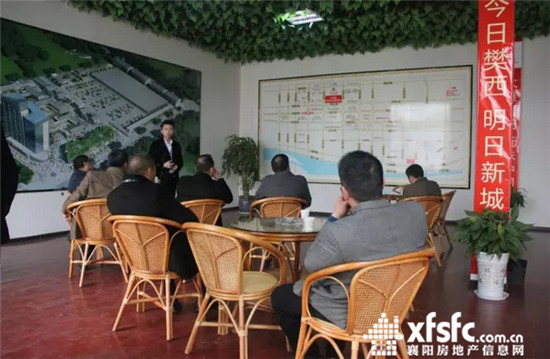項目臨時營銷中心,一行人仔細聆聽本項目發(fā)展建設情況