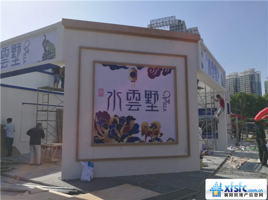 冠通水云墅展位正在進行外墻粉刷,醒目的LOGO排布展位四周,
