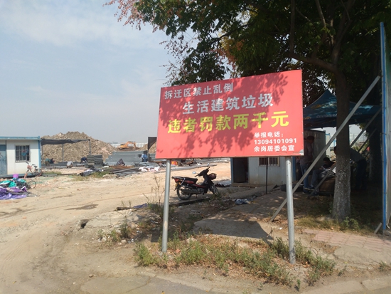 走走看看,偶爾發(fā)現(xiàn)馬路邊的槐樹(shù)花落了一地,似花非花的小蕊,金燦燦的,十分好看。在長(zhǎng)虹北路西側(cè),余崗社區(qū)拆遷的缺口處,我們得以進(jìn)入項(xiàng)目工地。在門口處幾個(gè)工程人員正在分析工程圖紙,而離他們不遠(yuǎn)的地方,建了有幾個(gè)臨時(shí)板房,應(yīng)該是工人居住的地方。