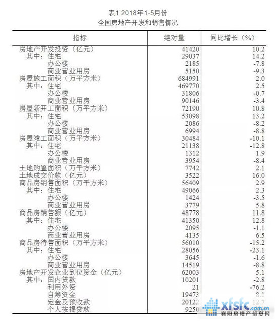 近期,國(guó)家統(tǒng)計(jì)局發(fā)布了2018年1-5月,全國(guó)房地產(chǎn)市場(chǎng)的權(quán)威數(shù)據(jù)。